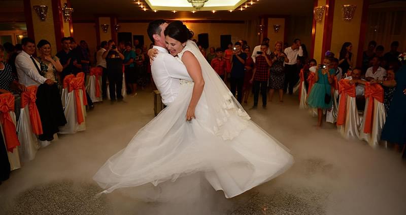 Das Dinner: Beim Betreten des Festsaales werde ich euch bereits mit dezenter Hintergrundmusik und Ambiente-Licht eurer Wahl empfangen. Wenn alle Gäste Platz genommen haben, kurz bevor das Dinner beginnt, werde ich euch ein Funk-Mikrophon reichen, das beim Sound- und Lichtcheck bereits eingestellt wurde, damit ihr eure Gäste gebührend offiziell begrüßen könnt. Dieses Funk-Mikrophon wird euch und euren Gästen den ganzen Abend über für Reden und Spiele zur freien Verfügung stehen. Während des Dinners werde ich euch mit weiterer Hintergrundmusik unterhalten. Beim Dessert allerdings fange ich schon an, euch mit ein paar lockern Beats aus z.B. den Charts für die Party-Nacht in Stimmung zu bringen. Bevor die Tanzfläche dann durch das Brautpaar mit ihrem Hochzeitstanz eröffnet wird, gibt’s ein kleines Warm-up, bestehend aus ca. 4-6 Musiktiteln, damit alle richtig Lust aufs Tanzen bekommen, die Musik wird etwas lauter, die ersten Lichter bewegen sich.